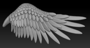 天使の翼 天使の翼のモデリングがほぼ出来ました。 まだ微調整が必要ですが、それは最後でいいでしょう。 今回は硬化した後も靭性があるリジンの強度を試したいので、 羽根はあえて薄く作ろうと思います。 通常のレジンであれば、羽根の部分は強度を上げるために分厚く作るところですが。 ちなみに画像は翼を外側から見たところ。